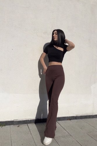 • Kadın yüksek bel krep kumaş bol paça pantolon