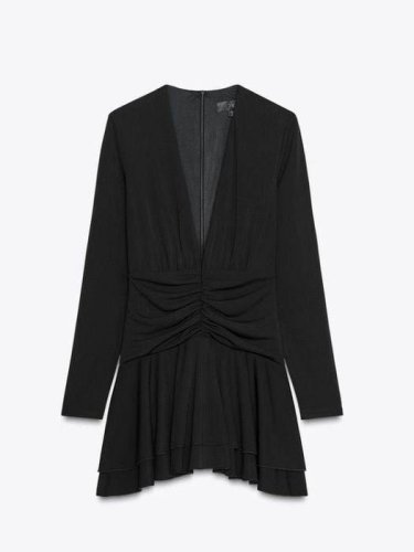 • Kadın uzun kollu derin v dekolte ve ek volan detay toparlayıcı şortlu elbise