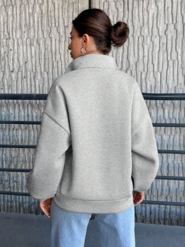 • Kadın uzun kollu boğazlı yaka fermuar detay üç iplik şardonlu sweat