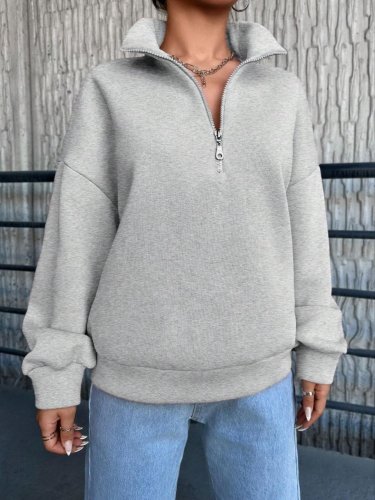 Kadın uzun kollu boğazlı yaka fermuar detay üç iplik şardonlu sweat