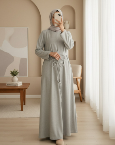 Beli Drapeli Çift Bağcıklı Selanik Uzun Elbise Bej