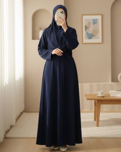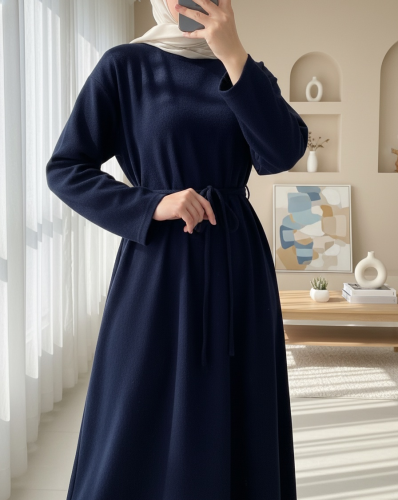 • Beli Drapeli Çift Bağcıklı Selanik Uzun Elbise Laci