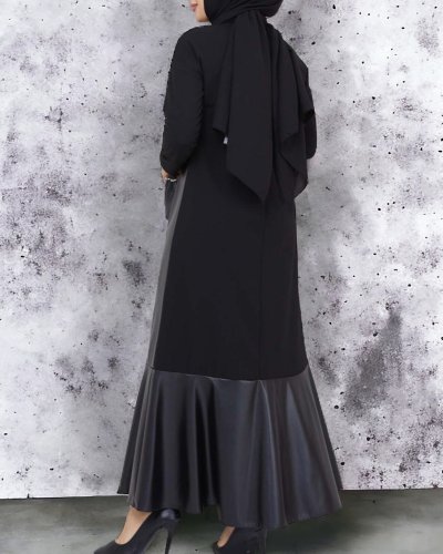 Deri Detaylı Metal Zincirli Elbise Siyah
