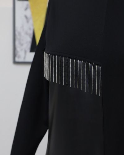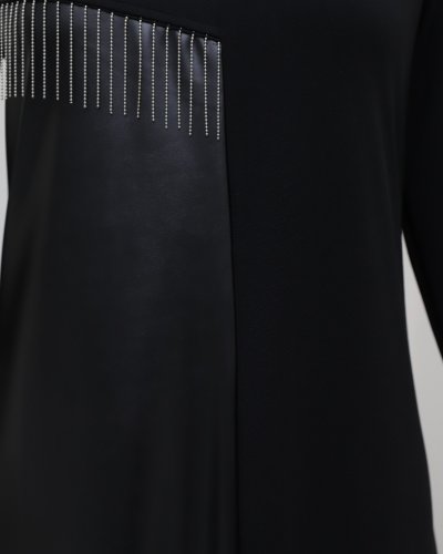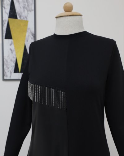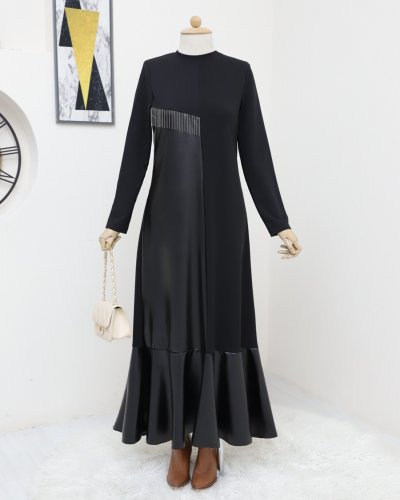 • Deri Detaylı Metal Zincirli Elbise Siyah