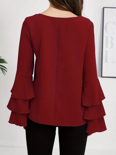 • Kadın uzun kollu bisiklet yaka kollar İspanyol volanlı sandy bluz
