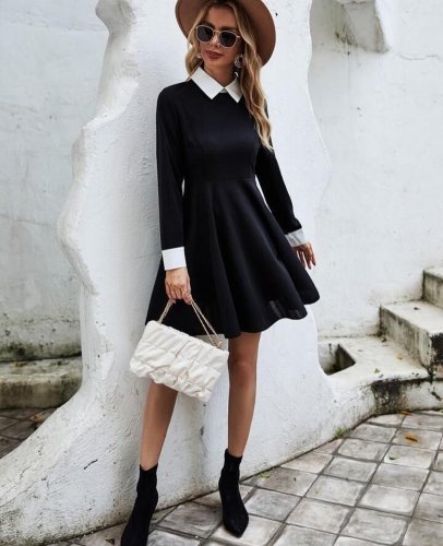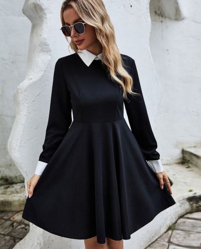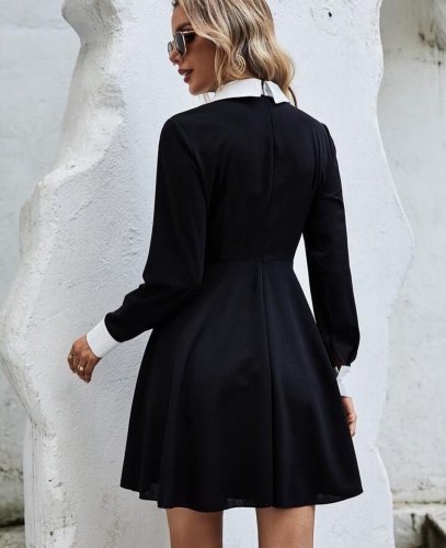 • Kadın uzun kollu gömlek yaka krep kumaş elbise