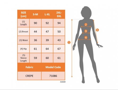 • Modelin Ölçüleri: Boy:165, Kilo:55, Göğüs:90, Bel:72, Kalça: 100