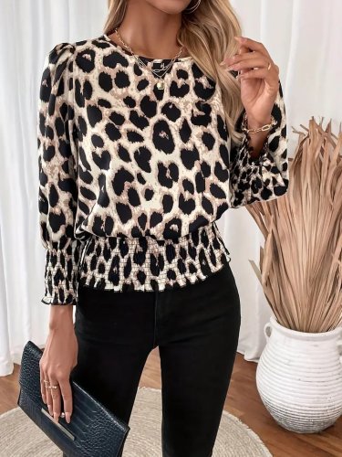 Kadın uzun kollu bisiklet yaka leopar desenli modal bluz