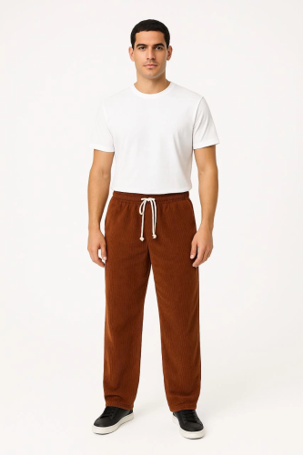 Erkek Fitilli Kadife Cepli Buggy Pantolon Oversize Rahat Kalıp Kahverengi