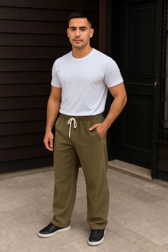 Erkek Fitilli Kadife Cepli Buggy Pantolon Oversize Rahat Kalıp Haki